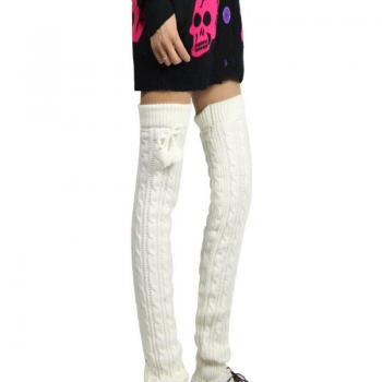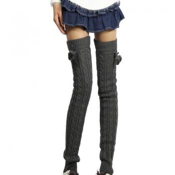 Calentadores de pierna para mujer, calcetín de punto cálido sobre la rodilla, calentadores de bota larga, calentador de piernas con bola de felpa, calentadores japoneses