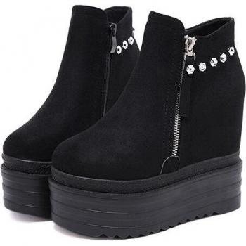Gdgydh, zapatos de otoño, botines de mujer, punta redonda, aumento de tacones, remaches de , botas cortas aterciopeladas, zapatos casuales con cremallera de Metal