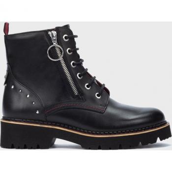 Botines elegantes en piel negra con cordones y cremallera lateral, suela extraligera para comodidad ligera; estilo versátil que combina con jeans o vestidos, ideal para un look sofisticado y práctico.