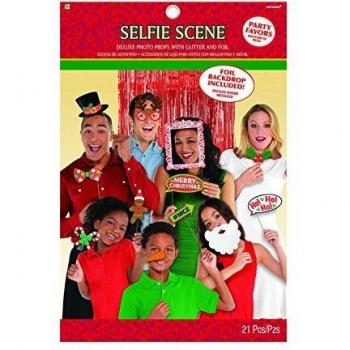 Amscan- Kit de Fiesta Navideña para Fotomatón-21 Piezas