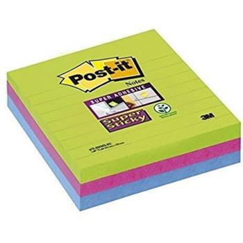 Post-it Ultra Colores Super Adhesivas - Notas adhesivas (3 x 70 unidades, 100 x 100 mm), Multicolor (Amapola/Verde/Azul)