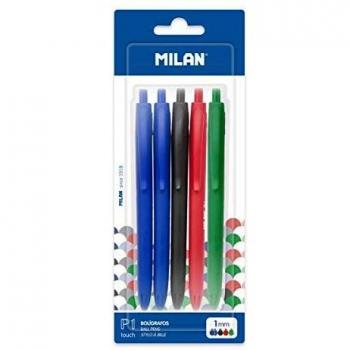 Blíster 5 bolígrafos p1 touch (2 azul, negro, rojo y verde) milan bwm10321