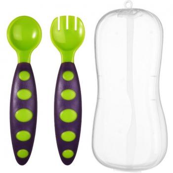 Cuchara y Tenedor de Seguridad para Niños, Juego de Alimentación Portátil con Caja