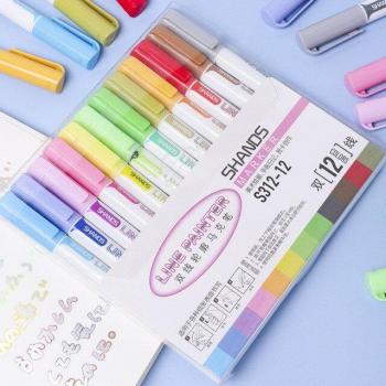 Kit de 8 plumas contorno coloridas de metal con efecto brillante y líneas duales, ideales para garabatear en Navidad