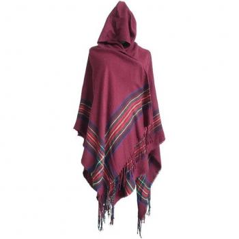 Poncho de mujer con flecos, bufanda gruesa y suave para el frío