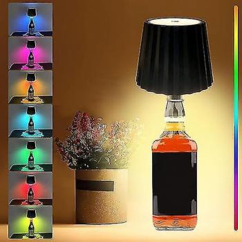 Lámpara de Mesa LED Recargable Bxs - Luz de Botella con Regulador y Colores RGB, Diseño Negro