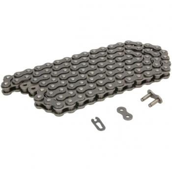 Cadena de moto DID 520NZ con 102 eslabones forjados, ligera y resistente al desgaste. El clip integrado facilita el montaje rápido y asegura un ajuste firme, ideal para rutas exigentes.