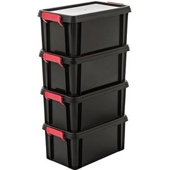 Iris Ohyama - Cajas de almacenamiento con tapas, 15L, Plata, Clips de Cierre