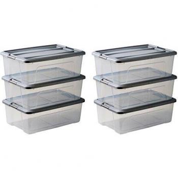 IRIS OHYAMA - 6 Cajas de almacenamiento con tapas, 30L, Plata, Clips de Cierre