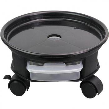 Maceta redonda con ruedas y compartimento para flores