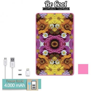 Becool® - Batería Externa Power Bank 4000 mah Rosa con Caleidoscopio de flores