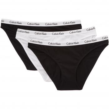 Un set compacto de tres bragas Calvin Klein en negro, blanco y gris que combina tejido suave con un corte moderno, ideal para usar bajo cualquier prenda sin dejar marcas, ofreciendo comodidad y estilo discreto durante todo el día.