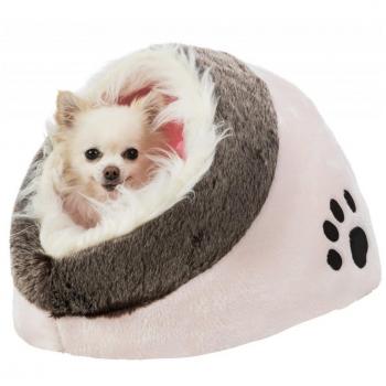 Un refugio acogedor para tu mascota con su forma compacta de 34x28x41 cm en gris neutro; el interior acolchado ofrece comodidad, es resistente y se limpia sin esfuerzo, ideal para perros y gatos.