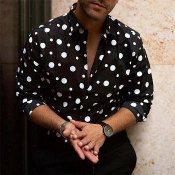 Novedad de en camisas de manga larga estampadas para hombre, Tops ajustados, camisetas Vintage con estampado Floral, camisa con botones y solapa, camisetas informales de otoño