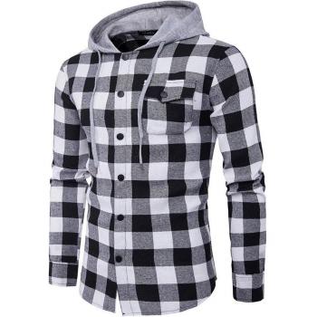 Camisa de manga larga a cuadros con capucha para hombre, corte moderno