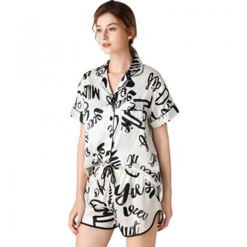 Pijamas de satén con manga corta y pantalones cortos para mujer