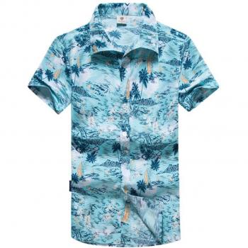 Camisa Playa Manga Corta Azul