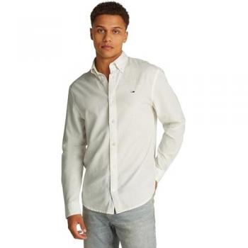Tommy Jeans Camisa de Manga Larga Fit Regular Blanco