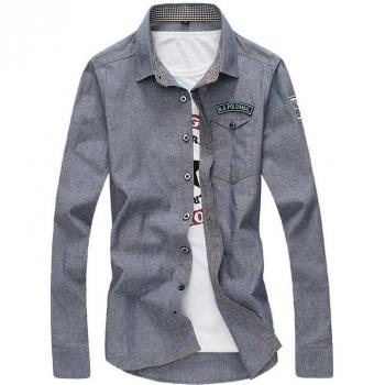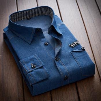 Camisa Denim Hombres Manga Larga Estilo Casual Azul