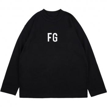 Camiseta de Calle para Hombre de Manga Larga FG Estampado de Letras Color Sólido