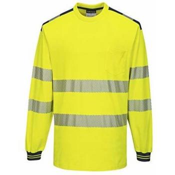 Camiseta de alta visibilidad de manga larga pw3 cuello redondo y bolsillo de pecho portwest t185