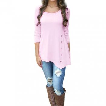 Camiseta Tunic Alexandra con Detalle de Cuello Ranurado Rosa