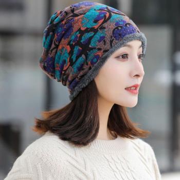 Gorro Invierno Mujeres Beanie Terciopelo Plus Impreso Cálido Suave Rojo