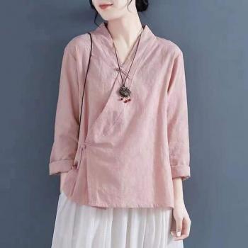 Tops informales de algodón y lino estilo chino