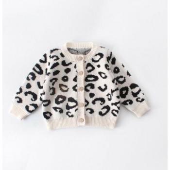 Suéter de punto cálido para recién nacida con estampado de leopardo
