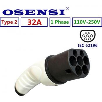 Cargador EV tipo 2, Conector de enchufe EVSE para vehículo eléctrico, carga de CA lateral macho 16A 32A, trifásico, monofásico