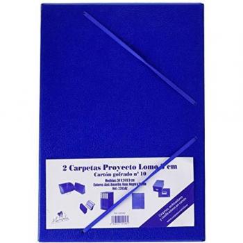 CAJA PROYECTO ARMADA CARTON GOFRADO LOMO 3CM GOMA AZUL