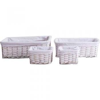 Juego de 4 Cestos de Mimbre Blanco