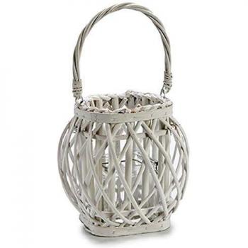 Portavelas cilíndrico de mimbre blanco