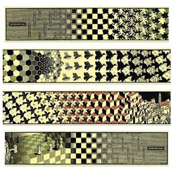 Cuadro decorativo moderno Escher - Metamorfosis II (4 paneles MDF, 100x22 cm)