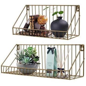 Estantería de Pared en Oro AGSIVO, 2pcs, Estantes Flotantes Metálicos
