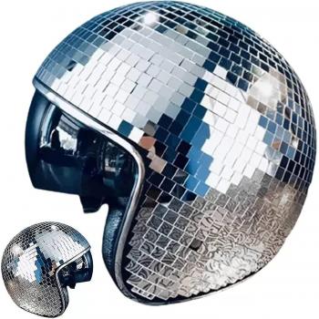 Casco Disco Ball de 1 pieza con visera retráctil para accesorios frescos de discoteca (plata)