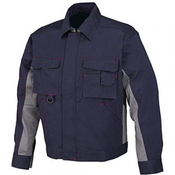 Cazadora de algodón stretch modelo M129837, talla 52L, tono azul profundo con sutil contraste gris. Diseño ergonómico que favorece la movilidad, mangas largas con puños elásticos y cuello redondo para comodidad durante todo el día.