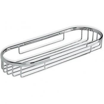 Cesto ovalado de aluminio brillante con apertura frontal que brinda gran capacidad, perfecto para almacenar artículos de baño sin ocupar espacio; su diseño moderno aporta estilo y practicidad al ambiente.