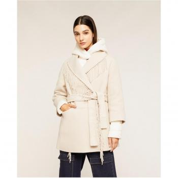 Abrigo corto de mujer con flecos y plumífero Motivi