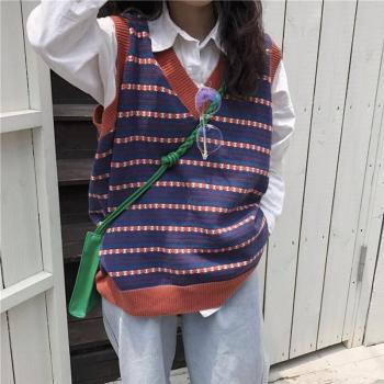 Chalecos de mujer tejidos Retro a rayas con cuello en V holgados de estilo coreano, prendas de vestir Preppy, Ropa Femenina Popular BF Chic, bonita ropa de uso diario