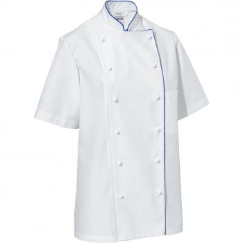 Chaqueta de Cocina Blanca/Azul Aila con Ribete PULSIVA, Manga Corta