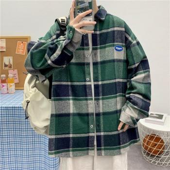 Camisa gruesa de franela a cuadros para hombre, abrigos Harajuku, chaqueta de bloque de Color, coreana, camisas holgadas Vintage que combinan con todo, 2022