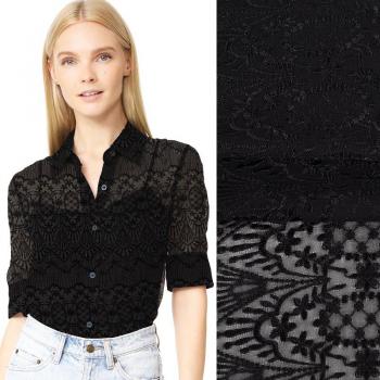 Tela de encaje negra Georgette 90 cm 100 g/m² para chaquetas y vestidos JH159