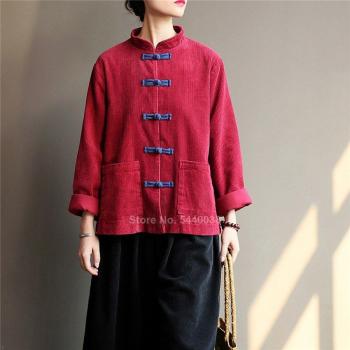 Chaqueta de pana mujer, traje tradicional de China, retro vintage, blusa unicolor, Hanfu, otoño-invierno