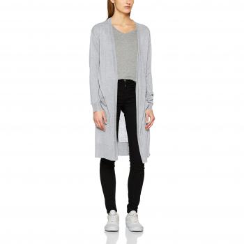 NOISY MAY Nmbecca L/s Long Knit Cardigan Noos, Chaqueta Punto para Mujer, Gris (Light Grey Melange), 36