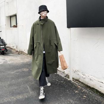 Gabardina de longitud media para hombre, abrigos anchos y sueltos, rompevientos de juvenil, abrigos largos del ejército verde, chaquetas M-XL, otoño de