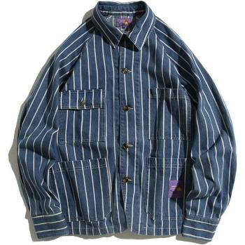 Chaqueta informal holgada de tela vaquera para hombre, abrigo masculino de estilo Casual, a rayas, estilo Hip Hop