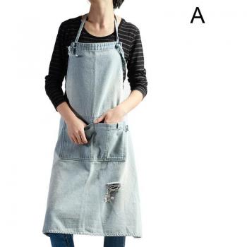 Delantal con cuello sin mangas para Chef, bata de tela vaquera, a prueba de polvo, con bolsillos, Unisex, YAA99, novedad