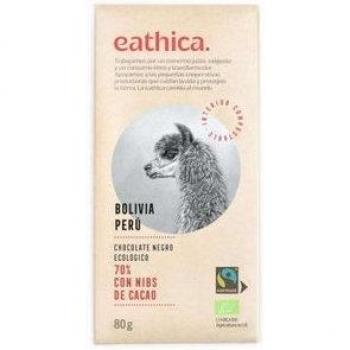 Chocolate 70% nibs cacao Bolivia Bio 80 g Eathica