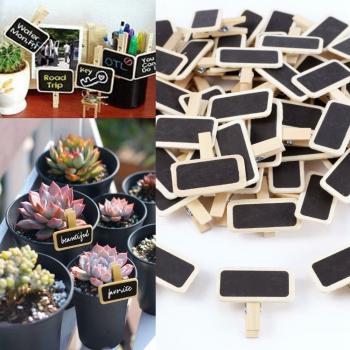 Mini pizarra de madera para mensajes, 50 Uds., Clip de pizarra, Panel rectangular, etiqueta para notas, mesa de dígitos